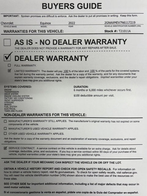 Limited 6-month/6,000-mile warranty
