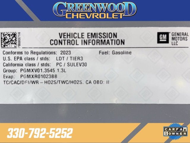 This Sterling Gray Metallic 2023 Chevrolet TrailBlazer LT AWD combines sporty styling, advanced connectivity, and all-weather capability in a compact SUV built for comfort and confidence. With its turbocharged performance and Chevrolets proven reliability, this TrailBlazer is the perfect fit for modern drivers backed by the Greenwood Advantage.
