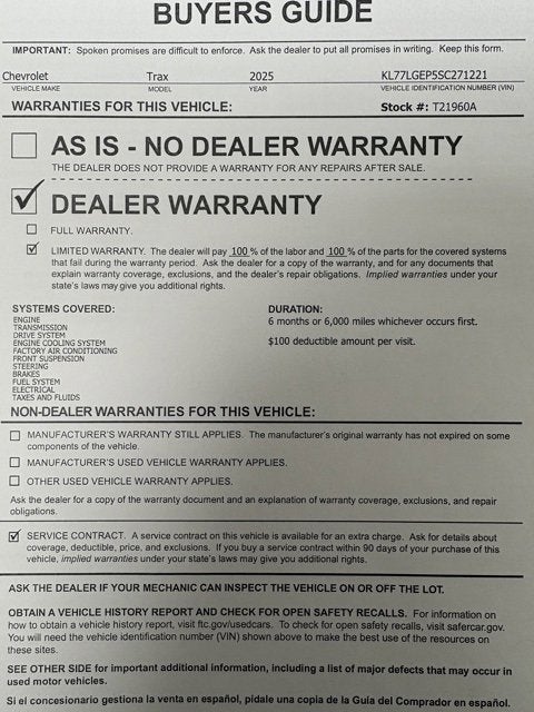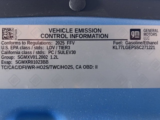 Sporty, efficient, and packed with modern safety tech, this 2025 Chevrolet Trax 1RS delivers standout style and everyday practicality. Finished in eye-catching Marina Blue Metallic, it features Heated Driver & Front Passenger Seats, Driver Confidence Package, Lane Change Alert with Side Blind Zone Alert, Rear Cross-Traffic Alert, Rear Park Assist, Chevrolet Infotainment 3 System with AM/FM, SiriusXM Trial Subscription, Leather-Wrapped Steering Wheel, and OnStar One Essentials emergency communication capability for added confidence on the road.