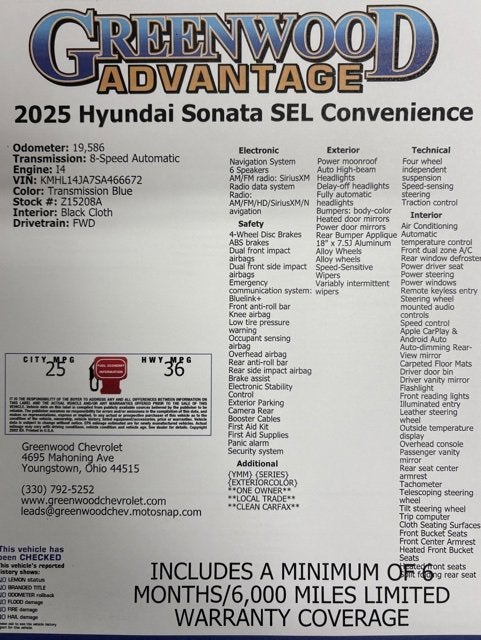 Greenwood Advantage means you get the assurance of a limited 6mo/6,000 mile warranty, one year of maintenance and the reassurance of our 126 point inspection. That’s your Greenwood Advantage!! 25/36 City/Highway MPG